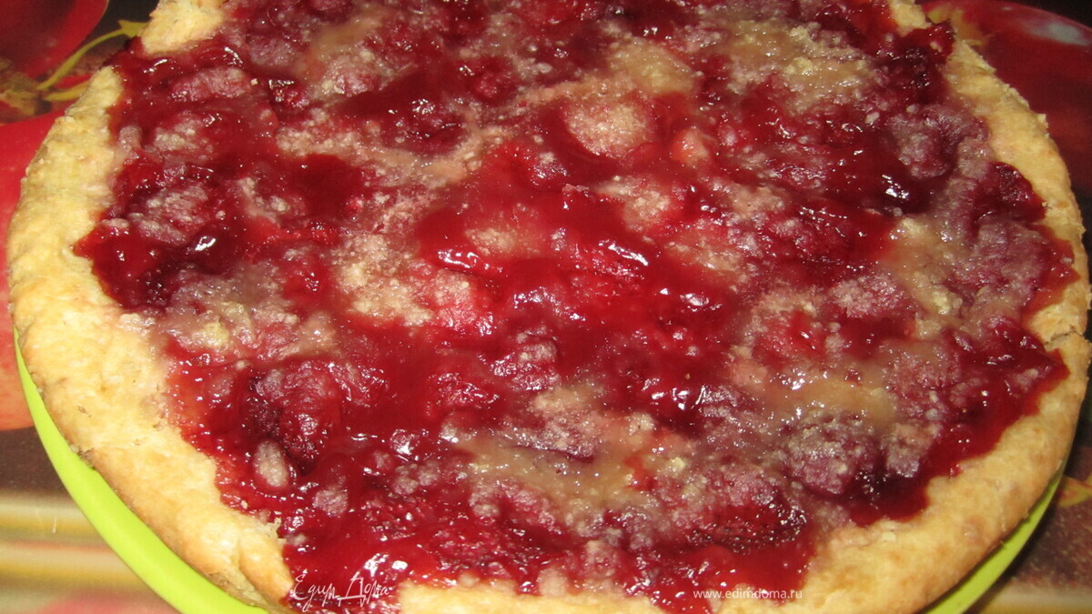 - Шаг 1Замесить не крутое тесто, убрать не на долго в морозилку. Ягоды немного разморозить, добавить сахар, крахмал. приготовить крошку: перетереть сахар, муку, масло. тесто выложить в форму, сделать бортики, выложить начинку, посыпать крошкой,выпекать при t 200, мин. 30-40