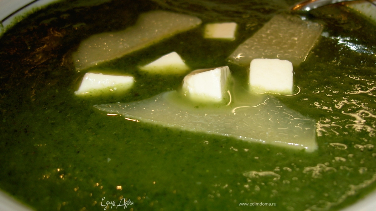 Все сладкое, да сладкое! А ведь есть среди нас постящиеся ( я знаю точно). И поститься нужно вкусно. Этот шелковистый суп со шпинатом, с кусочками брынзы и ломтиками пармезана поможет скоротать длинные постные дни, только замените сыры на тофу. Шпинат - отличный "наполнитель". Он с легкостью принимает, добавленые в небольшом количестве , "краски". Вот и в этом супе травки с мускатом раскрасили его в необыкновенный "цвет".