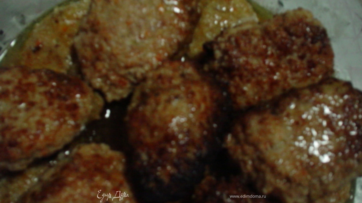 2Котлеты приготовила с корректровкой. Полбуханки батона даже на 1 кг мяса - это много. 3-4 кусочка хлеба максимум. Непонятно, зачем так много молока - хватит 150-200 мл. И в духовке, посл того, как котлетки будут обжарены, достаточно 20 мин их доготавливать.