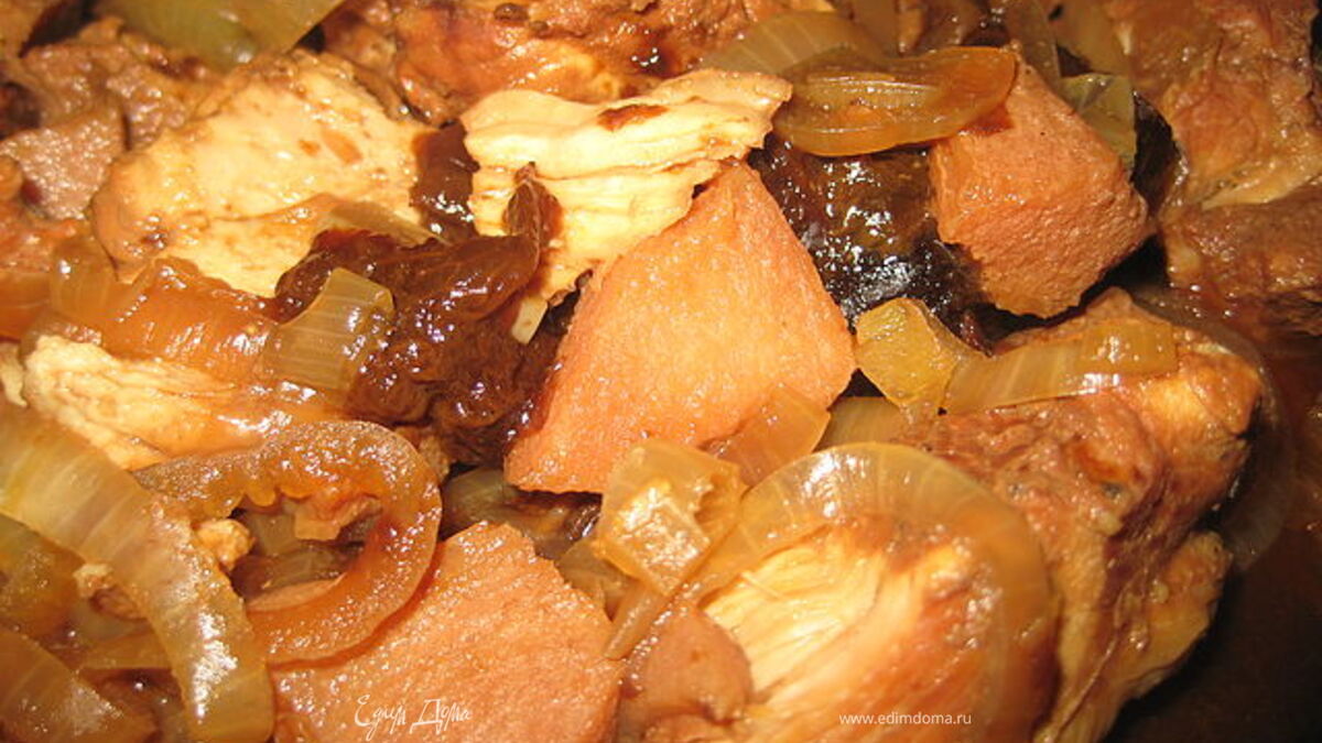Индейка, томлёная с айвой и черносливом