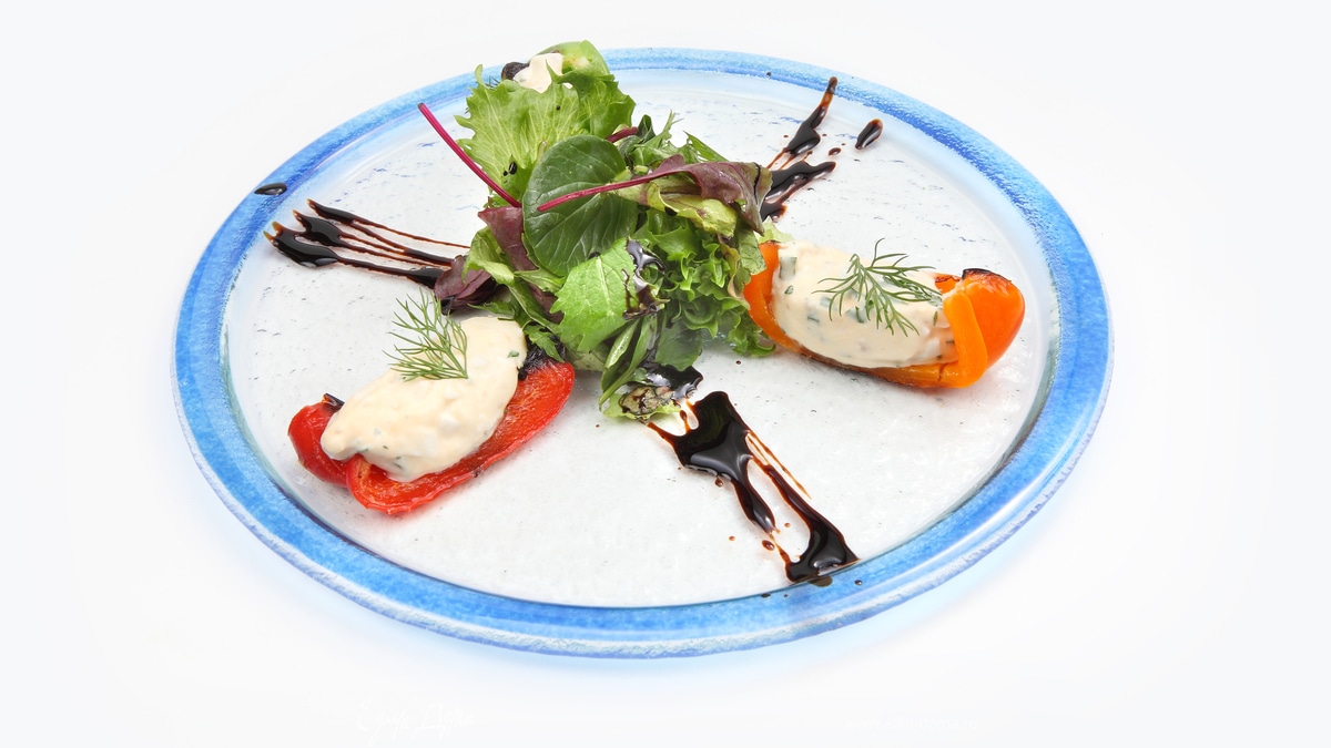 Печеный сладкий перец с сырными кнелями
