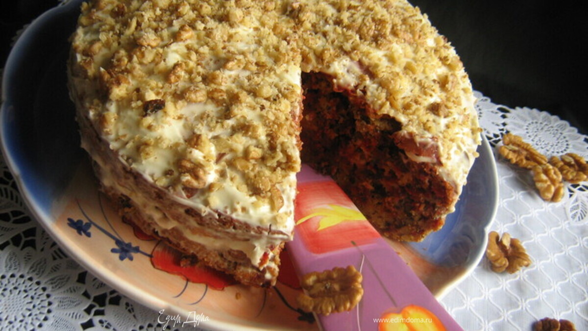 Свекольно-сырный торт с грецким орехом.