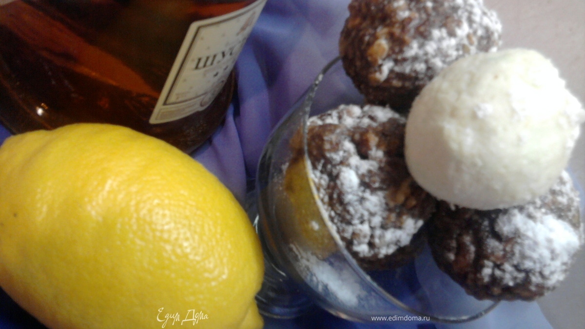 Затем берем немного кокосовой начинки, лепим шарик и вкладываем в него орех (помните, откладывали?). Кладем получившийся шарик на шоколадно-вафельную лепешку. При помощи фольги лепим шарик. - Шаг 12