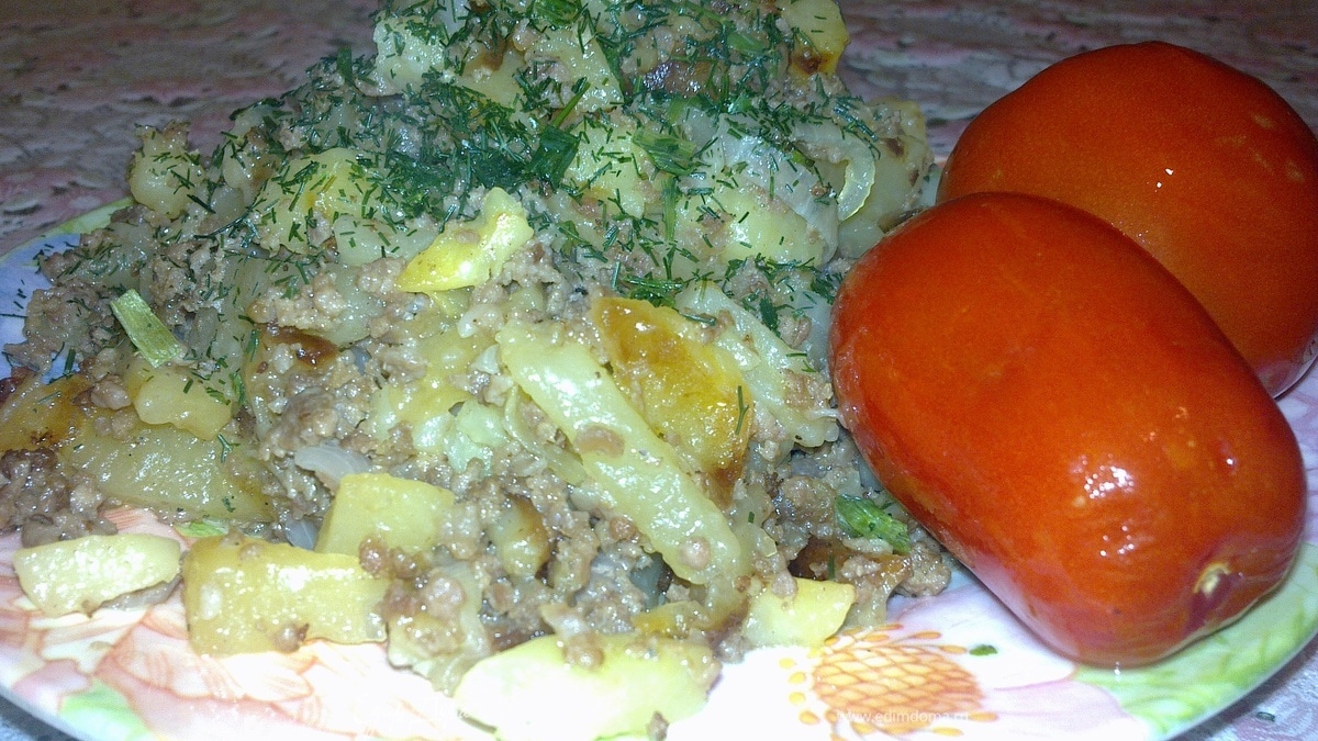 Картошка , жареная с мясным фаршем