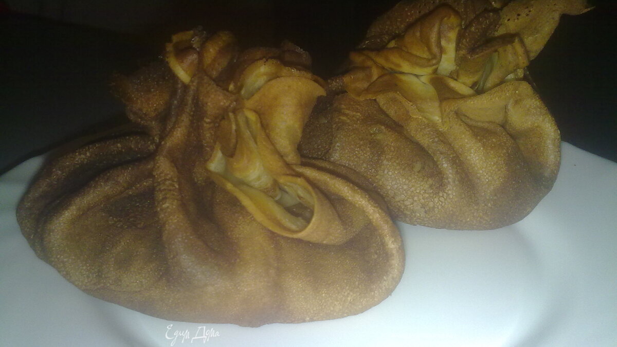 - Шаг 1Рыбу без костей разделываем на филе, солим, перчим. Готовый блин разворачиваем, на середину выкладываем рыбу, сверху посыпаем луком и зеленью (мелко нарезанными). Сворачиваем зубочисткой в мешочек, ставим на лист смазанный маслом и выпекаем в духовке 15 минут. Перед подачей на стол, зубочистки вынуть.