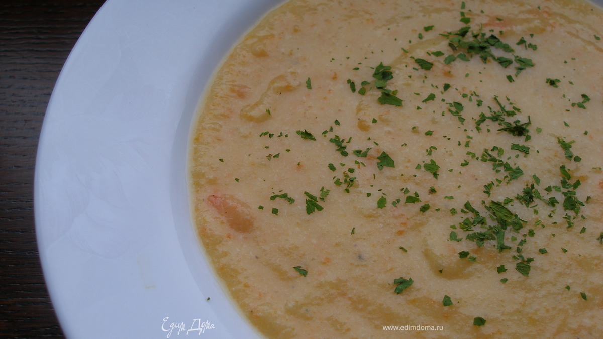 - Шаг 1В кастрюле растопить масло, посыпать мукой, размешать и добавить овощи с тыквой, тщательно перемешивая. Добавить все оставшиеся ингридиенты (кроме сливок) и тушить на медленном огне, пока картофель не будет готов. Блендером сделать из смеси пюре, ввести сливки. Довести до кипения и сразу же подавать.