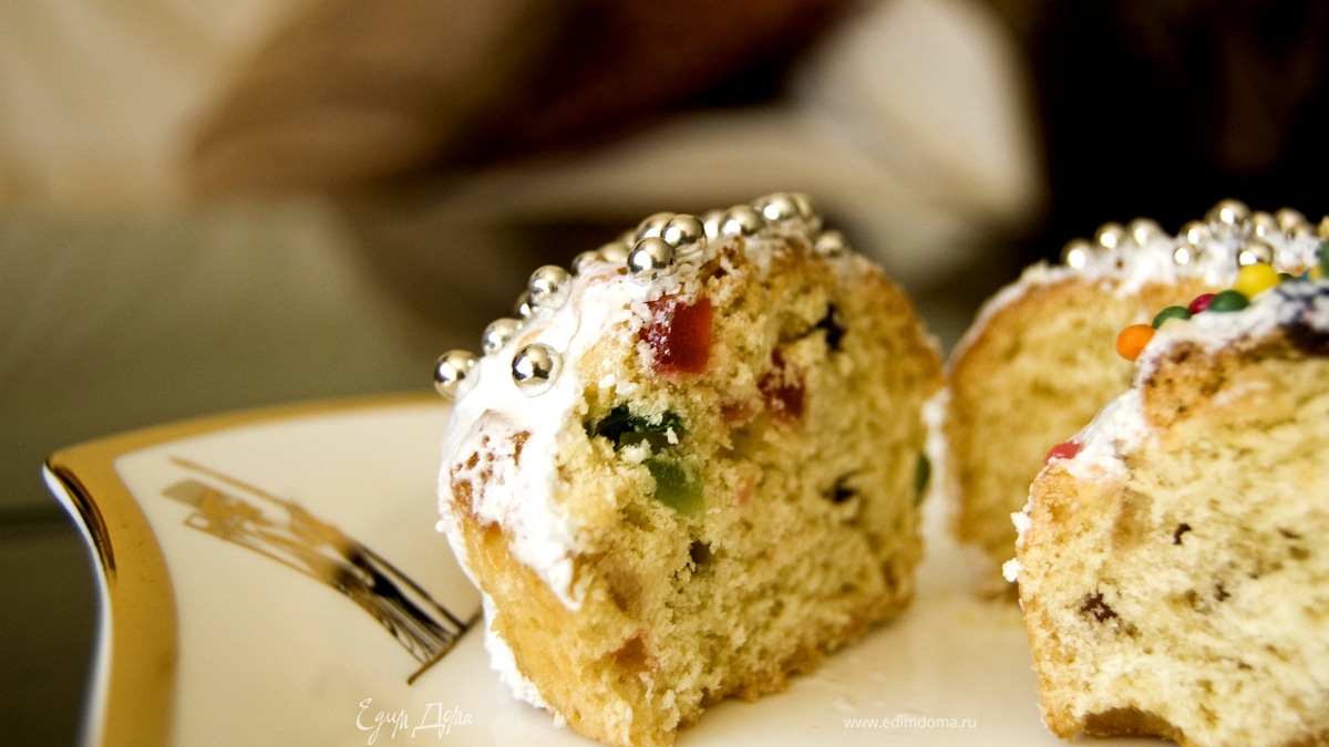 Пока тесто подходит, готовим формочки. Их нужно выложить пекарской бумагой. Мы всегда вырезали кружок для дна, а края выкладывали, свернув бумагу в трубочку и бумага на 1см выглядывала из формочки. Тестом формочки заполняем примерно на половину, даже меньше. Оставляем немного подойти. Разогреваем духовку до 160-180 градусов и выпекаем 20 минут, или пока не зарумянится верхушка. - Шаг 5Крем для поливки и украшение делаем по желанию. Я взбиваю белки с сахаром, но так, чтобы сахар не весь растворился :) Надеюсь, что вам понравится этот рецепт! Светлой всем Пасхи!