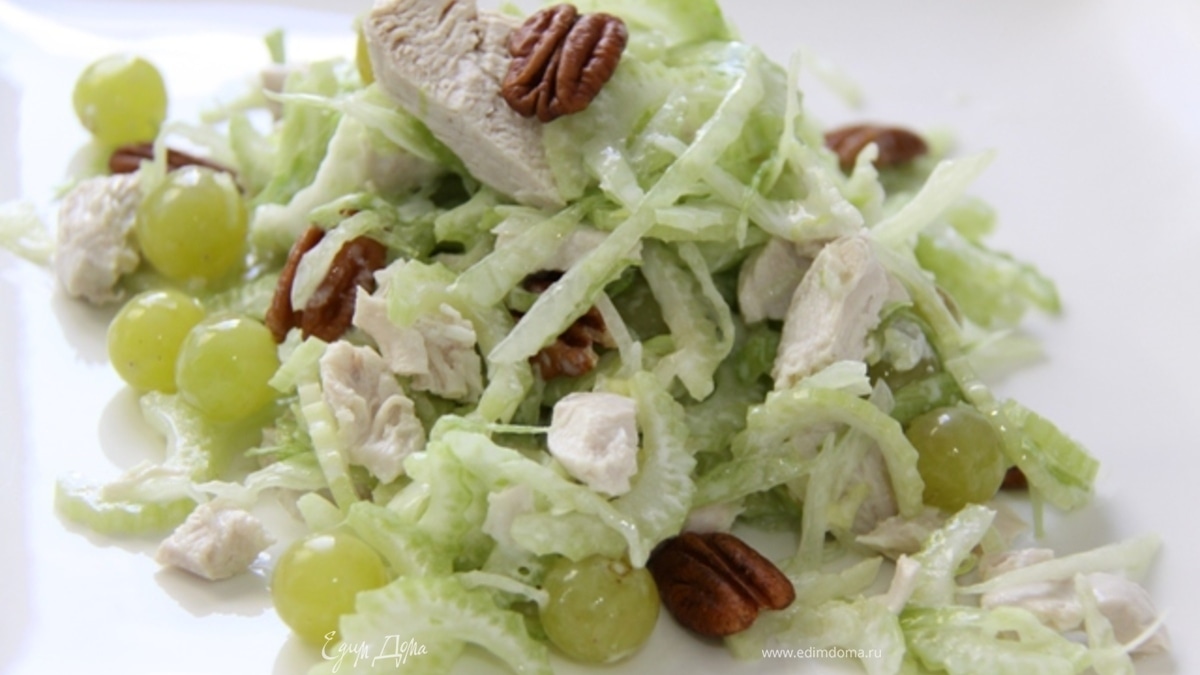 Этот салат очень легкий и освежающий, он идеально подходит для обеда в теплую весеннюю или летнюю погоду. Я делаю ПП-салат с курицей, хотя можно готовить и без нее. Вместо свежего винограда можно использовать изюм, но я больше люблю с виноградом, вариаций рецепта очень много. Иногда я добавляю в салат нежирный сыр, нарезанный кубиками.