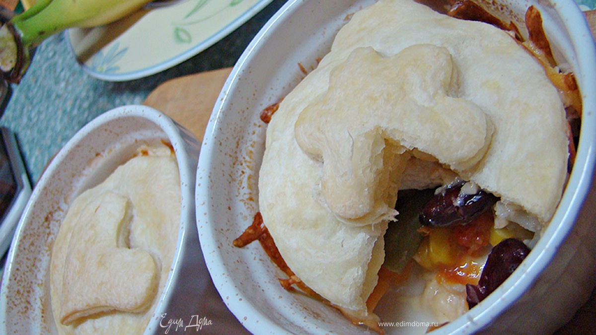 Куриная грудинка с овощами под крышечкой с слоеного теста.