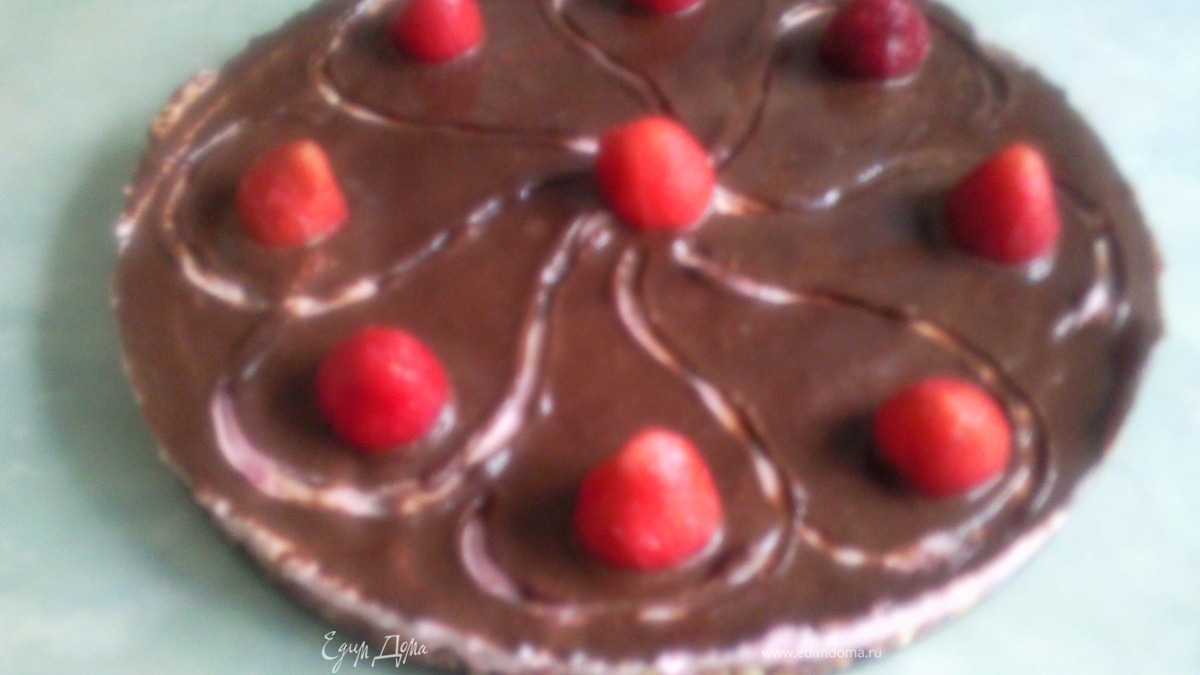 Достаем готовый десерт, украшаем клубникой (мне с удовольствием доча помогала). Можно палочкой нанести узоры. Приятного чаепития!