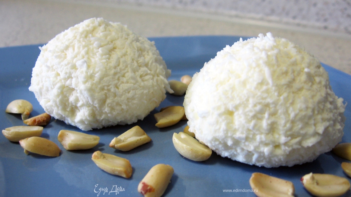 - Шаг 2Из полученной массы сформировать шарики и обкатать их в кокосовой стружке.