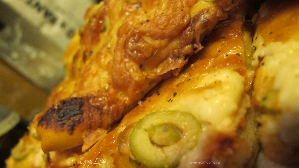 Домашняя пицца с семгой, оливками и орегано