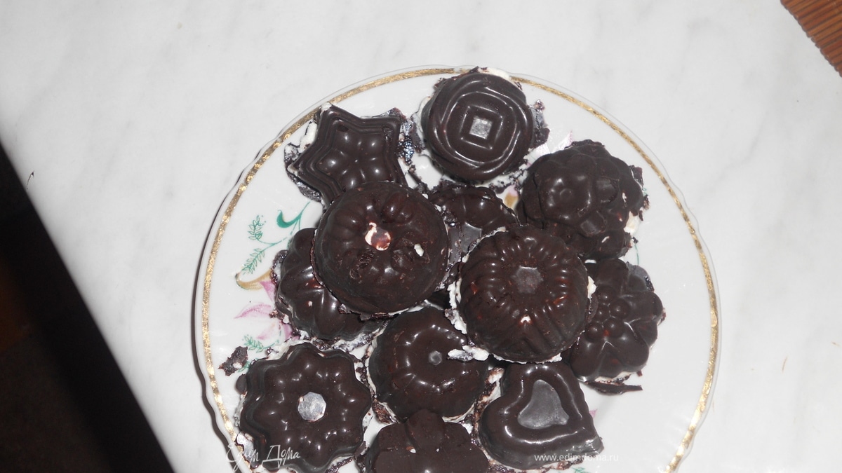 - Шаг 1Шоколад растопить на водяной бане.С помошью кулинарной кисточки,смазать формочки и поместить их в морозилку на 2 минутки.