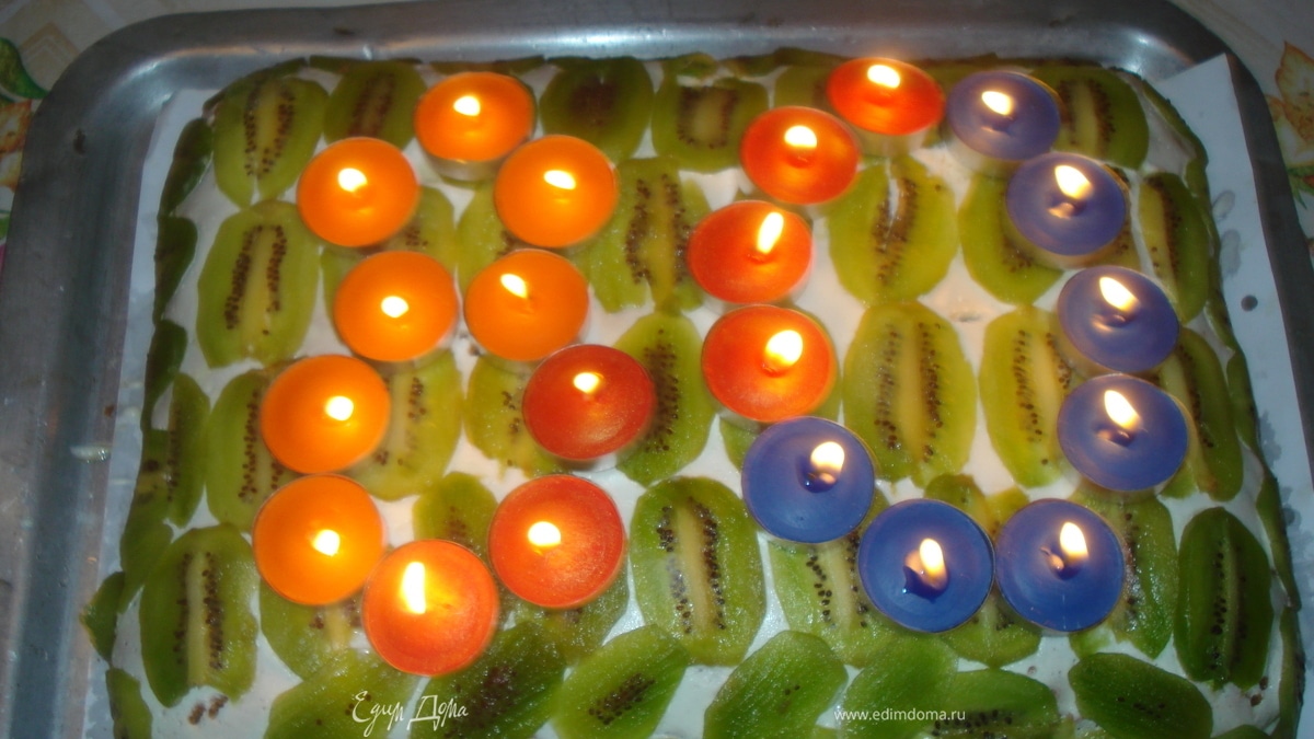 тесто можно замешивать миксером (у меня такой как у Юлии В.)1)яйца взбить с сахаром 2)добавить мед (подогрела чтоб он стал жидкий, но не горячий) 3)соду погасить лимонным соком и тоже добавить 4)муку просеять и медленно вводить в тесто (тесто должно получиться "густо-жидким" 5)форму выстилить бумагой для выпички и смазать слив. маслом 6)вылить тесто на форму и выпикать 15-20 мин. при температуре 180 С 7)для крема: сметану взбить с сахаром и поставить в холодильник для загустения мин.30 пока выпикается корж 8)если грецкие орехи, то их надо поджарить и измельчить 9) после того как корж остыл, разрезаем его на два тонких коржа 10)смазываем кремом нижний корж и посыпаем орехами 11)кладем второй корж и тоже смазываем кремом 12) нарезаем киви пластинками и накрываем полностью торт 13)по желанию коржи можно пропитать сиропом перед смазыванием кремом:50 мл. воды 2-3 ст. л. сахара, взбрызнуть коржи, а потом можно крем 14)украсить можно свечами
