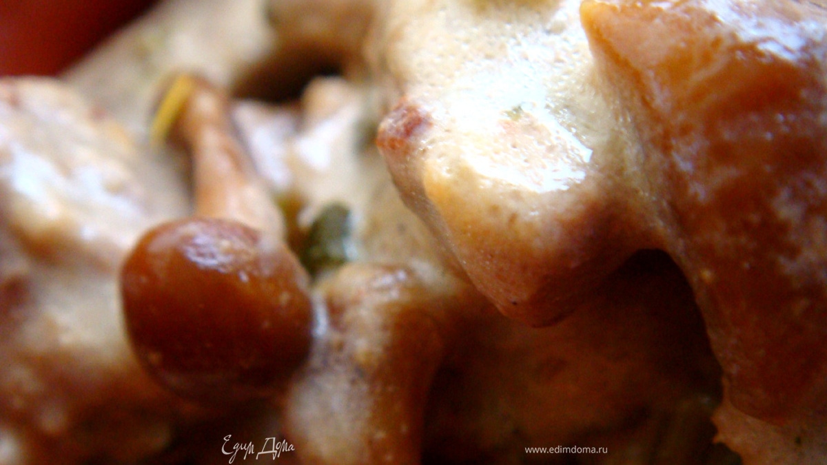 Соте из говядины в сметанно-винном соусе с опятами
