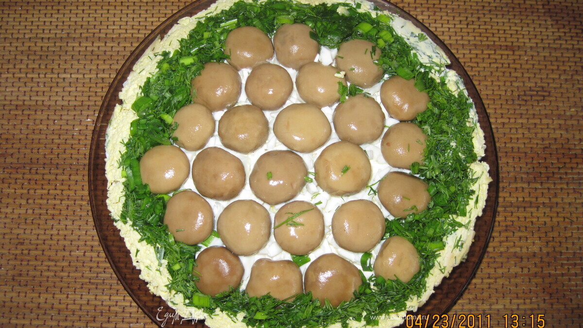 Рецепт салата «Полянка» с курицей и грибами