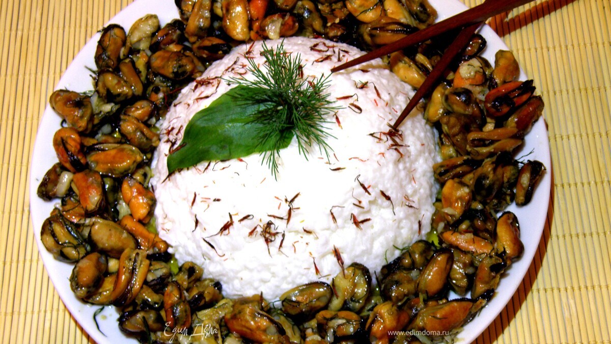 - блюдо с мидиями и рисом