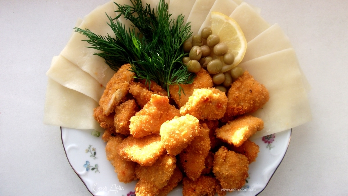 - Шаг 1Филе курицы нарезать не большими кусочками, уложить в тарелочку. Сбрызнуть лимонным соком, посолить, поперчить. Добавить не много приправ кари и кукурмы. Оставить на пол часа. Затем обвалять в панировачных сухарях и обжарить в масле. Предварительно приготовить пасту. Ну вот вообщем то и всё что я делала :)Курица получилась с очень интересным вкусом. Приятного аппетита )))