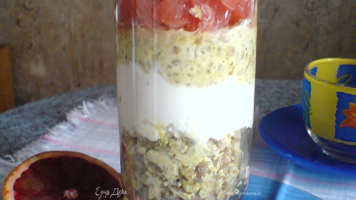 Теперь коротко о пользе входящих ингредиентов. Зелёная греча,т.к. не подвержена никакой обработке,в разы превосходит по составу,обычную гречу,витаминами гр.В,РР,Р(рутин-благотворный для сосудов)содержится только в грече(из зерновых), С,Д,Е;железо,калий,магний,медь,цинк,хром,селен;растительный белок и незаменимые аминокислоты-т.е."золтое"сочетание натуральных питательных веществ.Греча относится к продуктам с "отрицательной" каллорийностью. Овсяные хлопья(продукт молодости...)связывают "свободные"жиры и ещё много чего... Льняная мука-калий(в 7раз больше,чем в бананах),магний,фосфор,селен;ОМЕГА-3 и 6 жирные кислоты;особенно эффективна для тех,у кого "ленивое" пищеварение.Единственное НО:добавлять по чуть-чуть(т.к. очень увеличивается в объёме). ВСЁ это натуральная растительная целлюлоза,которая помогая очистить ВСЁ и ВСЯ в вашем организме,снабдив его при этом всеми "полезностями". Куркума и корица-горькие специи,чистят кровь и "ражигают внутренний огонь",т.е.улучшают метаболизм... Майоран-растение лекарь,улучшающее пищеварение и растворяющее жиры(им,вообще хорошо приправлять все жирные блюда). Имбирь-об этом даже не пишу... Грейпфрут-тонизирует,снимает отёки и за счёт горечи,ускоряет переваривание пищи. Все сосставляющие относятся "долгим" углеводам,т.е.усваиваться всё это будет долго и правильно и если вы съедите такой завтрак,то обедать захотите не раньше,чем через 5-6часов...Причём при достаточно высокой каллорийности получившегося блюда,будете только худеть...