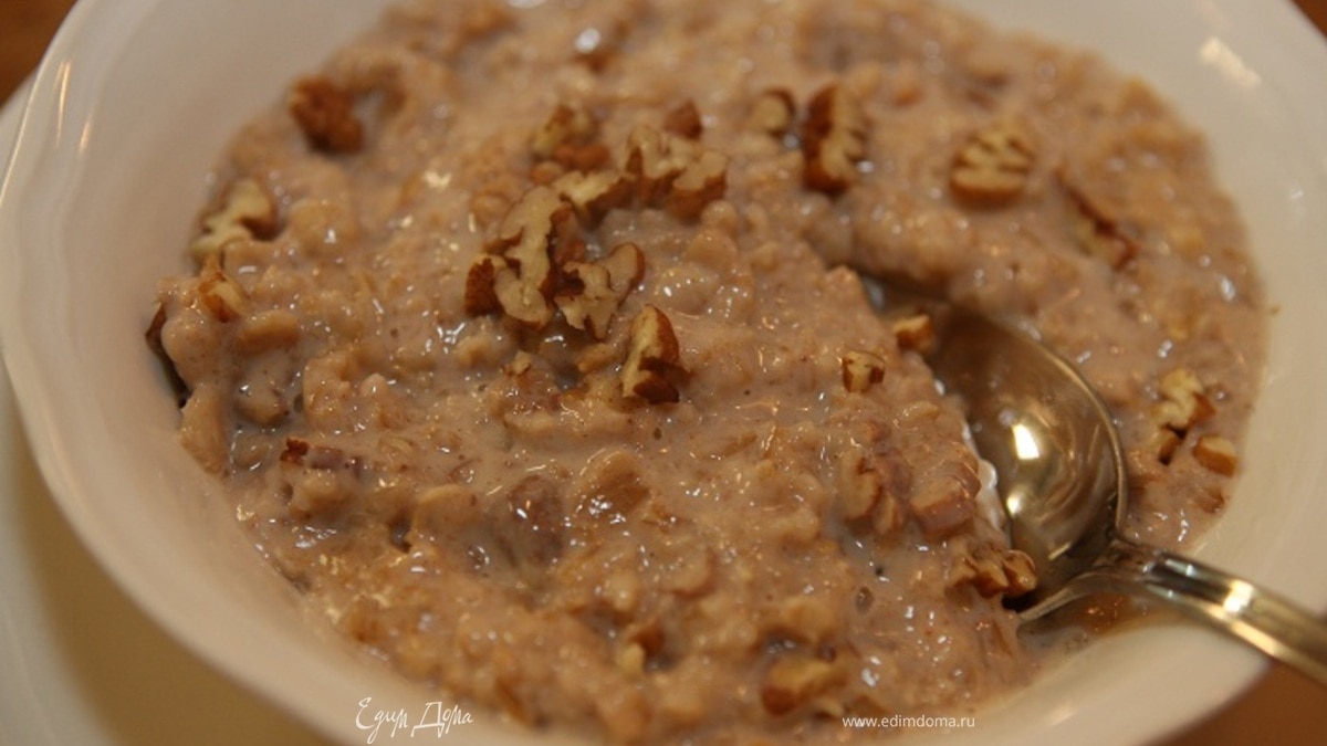 Пекан гениально сочетается с кленовым сиропом, но вообще подойдут любые орехи. Хорошо не только накрыть готовую кашу крышкой, но и закутать кастрюлю в полотенце.