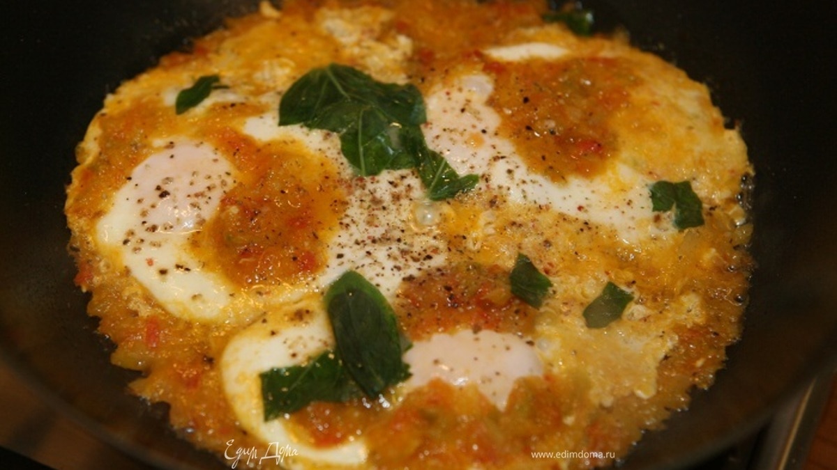 Яйца с помидорами, сладким перцем и базиликом по-итальянски