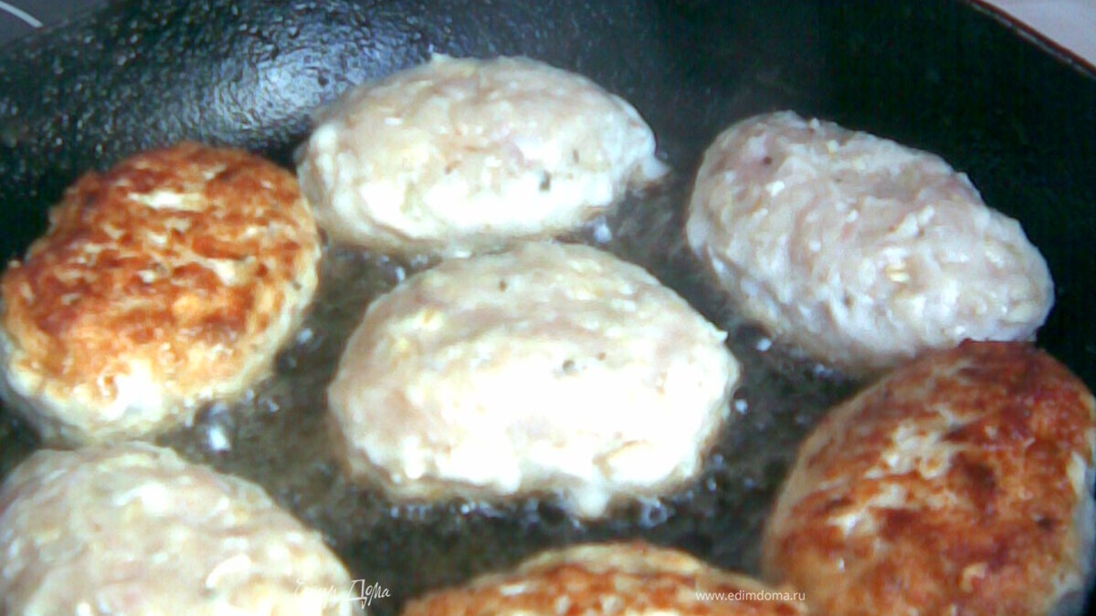 - Шаг 2После чего просто жарим,без фокусов и лишних затрат времени.Просто но для белого куриного мяса,это самый сочный вариант котлеток.приятно полакомиться милые девочки.