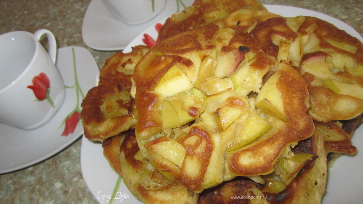 Такие оладушки очень любит моя доченька, но наверное не так сам оладушек, как выковыривать кусочки яблочка.)