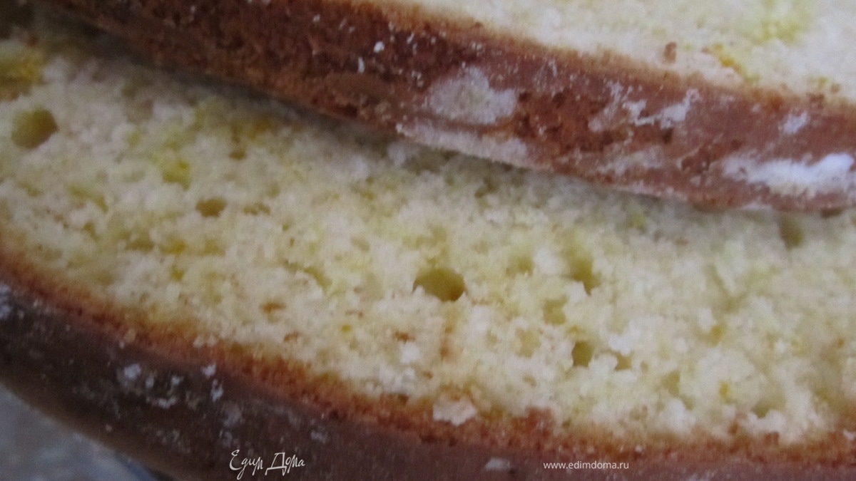Бисквит достать их формы. Орошо охладить, разрезать.