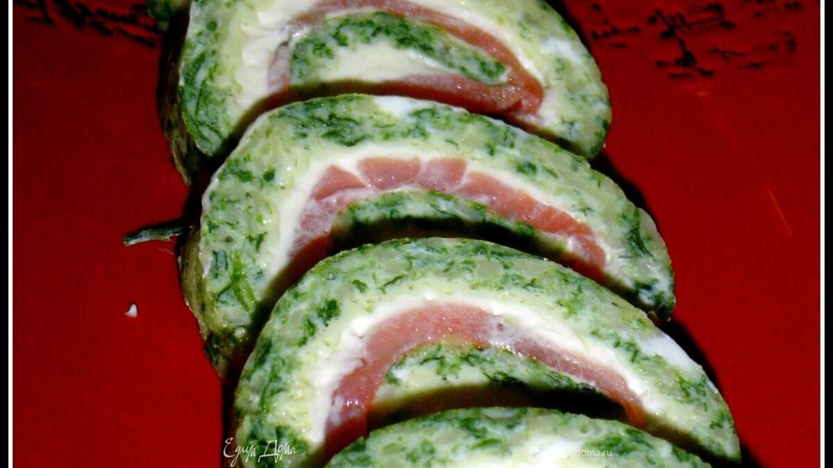 Закуска из омлета, сыра и красной рыбы