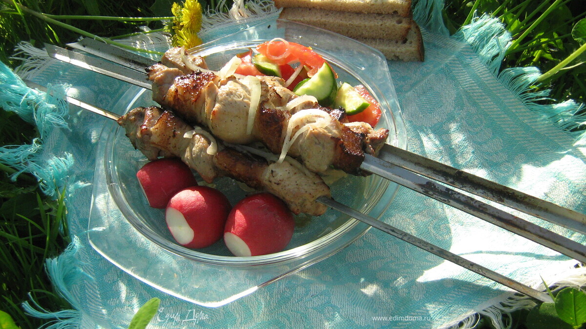 Имбирно-лимонный шашлык-ассорти из курицы и свинины
