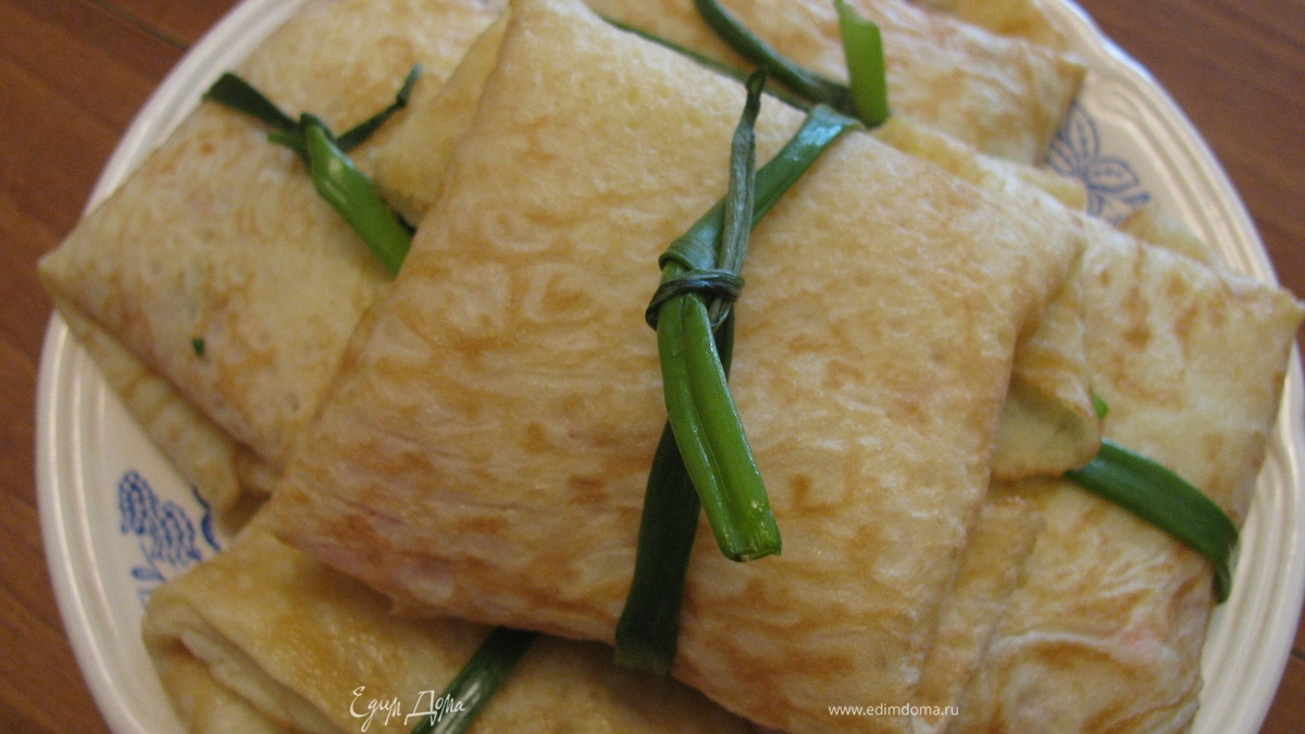 - Шаг 3Обвязать конвертики тонкими перьями лука.