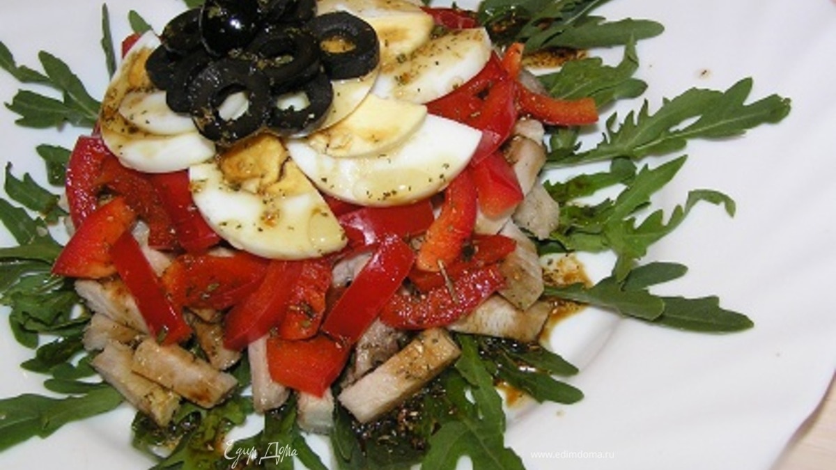 Мясной салат с руколой и перцем