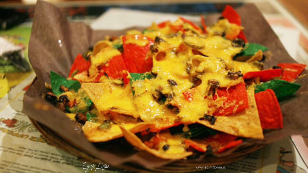 - Шаг 11. Подогрейте масло на сковородке для жарки, добавьте репчатый лук, зеленый перец и чеснок и осторожно готовьте, эпизодически перемешивая, 5 мин, или до размягчения; 2. Добавьте томаты и перец чили и готовьте еще 5 мин при среднем нагреве, или пока большая часть жидкости не испарится. 3. Примешайте порошок чили и паприку и готовьте 3 мин, затем добавьте жареную фасоль, раздавливая ее вилкой. Добавьте отмеренное количество воды и варите, время от времени размешивая, 8-10 мин, пока смесь не загустеет. 4. Соберите ложкой фасоль в середину формы для выпечки, расположите кукурузные чипсы вокруг по краю и посыпьте римским тмином. Посыпьте сыр поверх фасоли и кукурузных чипсов. 5. Готовьте в предварительно нагретой духовке при 200 гр 15-20 мин, пока сыр не расплавится. Посыпьте сверху паприкой, нарисовав решетку.