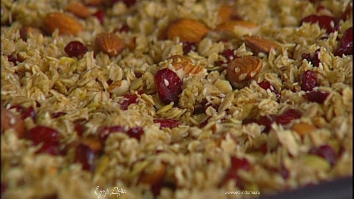 Готовую гранолу остудить, затем вынуть из противня.
