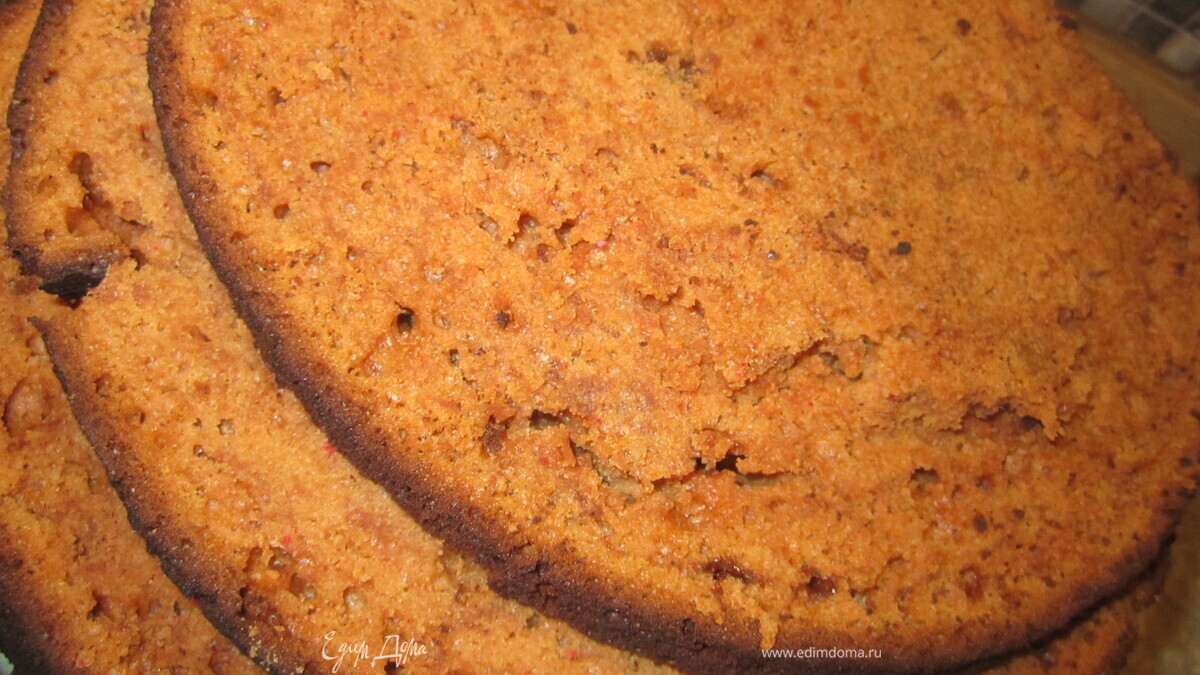 У меня получилось такой бисквит разрезать на три коржа, а можно даже было и на четыре.))