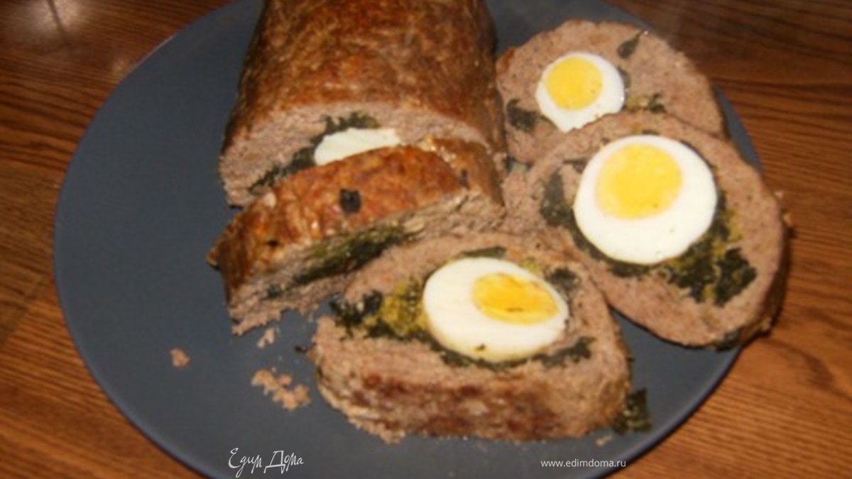 - Шаг 11.Брокколи разделяем на соцветия,кидаем в кипящюю подсоленную воду,варим 10 мин.Разогреваем оливковое масло,чеснок,мелко нарезанный лук,обжариваем. 2.Добавляем сваренную брокколи,посолить и поперчить.Накрываем ,тушим 5мин . 3.Отвариваем яйца. 4.Хлеб замочить в молоке, отжать хлеб , фарш вместе пропустить через мясорубку. 5.В фарш добавить желтoк, соль, перец и специи по вкусу. Белoк взбить в крутую пену. Аккуратно перемешать фарш.Если масса получится густоватой, можно добавить немного молока, в котором замачивали хлеб. 6.Фольгу смазать маслом , разложить фарш довольно толстым слоем, на фарш выложить брокколи и разровнять На шпинат выложить вареные яйца. Края фольги поднять и соединить над рулетом так, чтобы он был завернут не плотно Поставить протвень в духовку (200*С) на 45 минут. В середине запекания, минут через 20, температуру снизить до 170*С. Через 45 минут фольгу развернуть и запекать рулет еще минут 20-30 до подрумянивания. 7.Подавать рулет с картофельным пюре и луковым соусом.