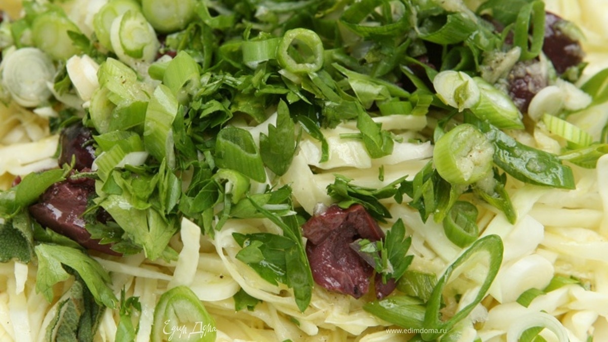 Капустный салат с оливками и чесночной заправкой