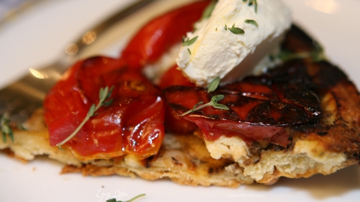 Раскатать тесто в пласт, смазать его тапенадом и накрыть помидоры смазанной стороной. Заправить края теста внутрь и отправить в духовку на 15−20 минут. - Шаг 11