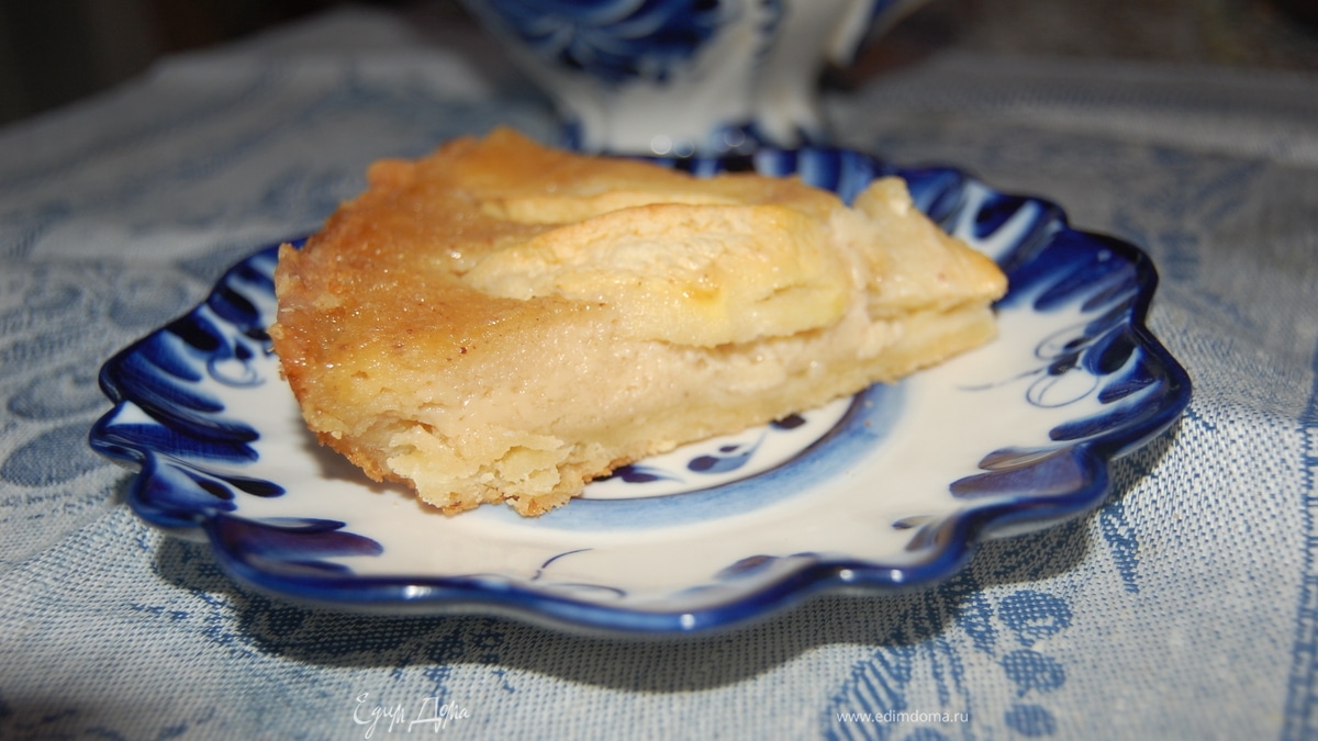 На горячий корж с яблоками выливаем нашу крем-брюлевую смесь, духовку переключаем на 150 градусов и ждем еще 40 минут. - Шаг 6