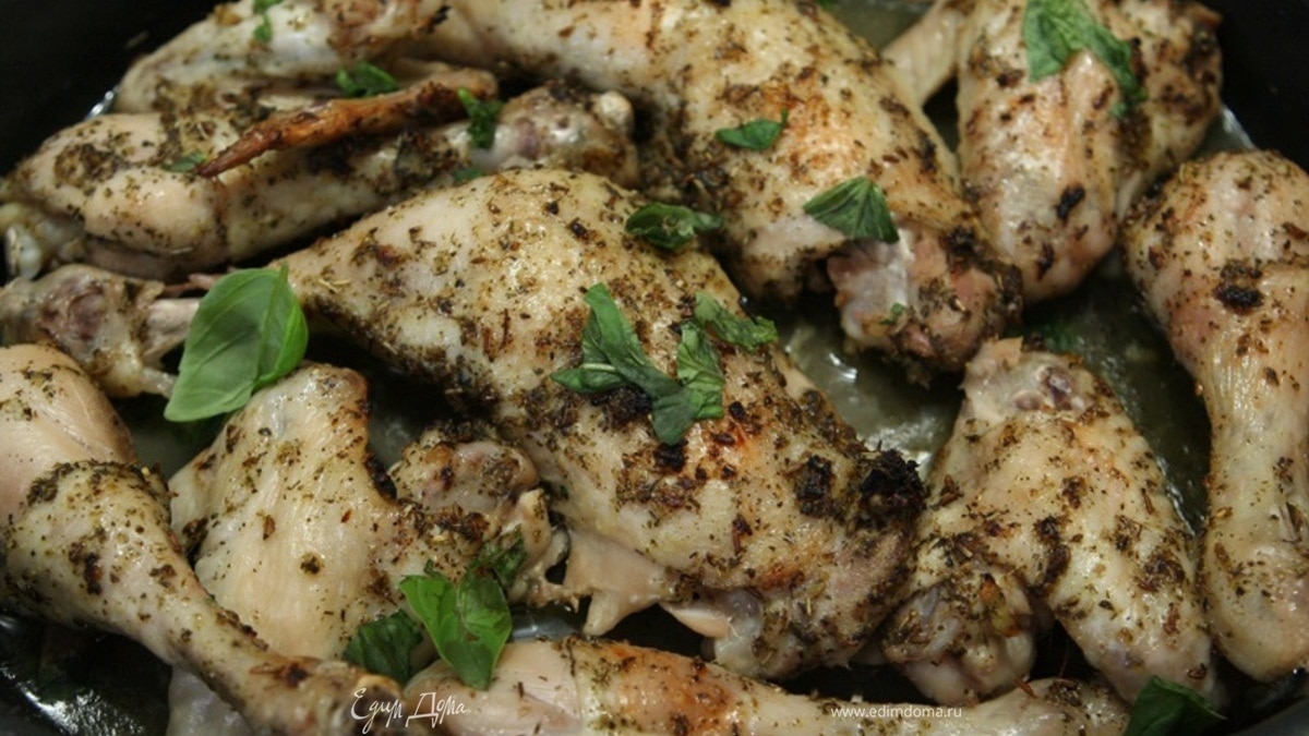 Запеченный в пряностях цыпленок с базиликом
