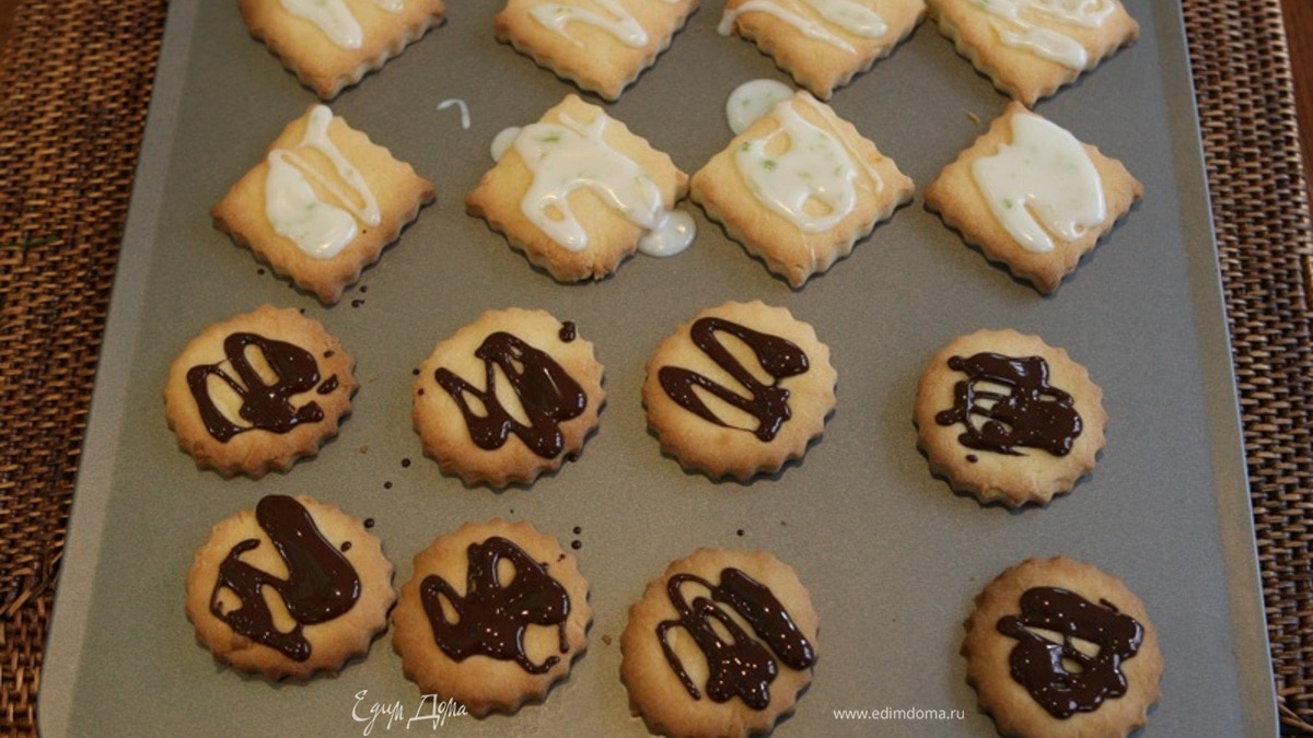 Печенье остудить и полить лимонной глазурью и растопленным шоколадом.