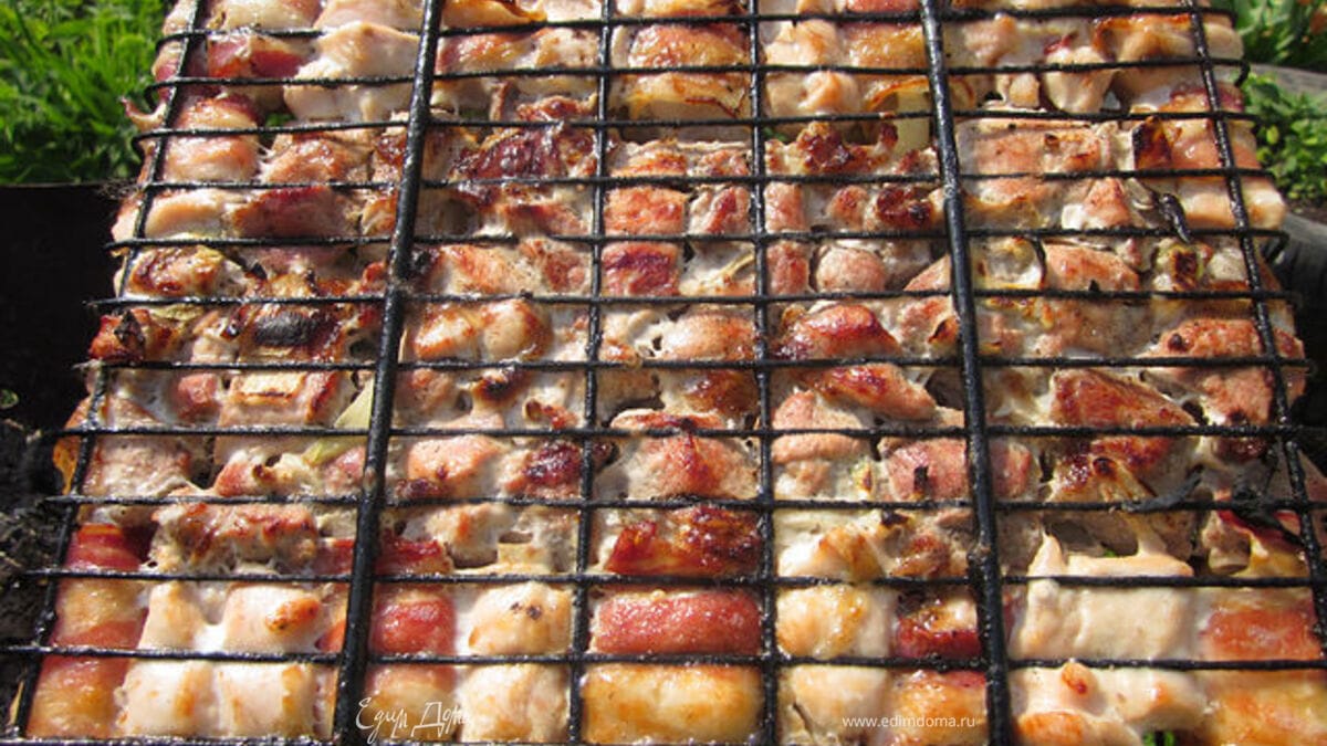 Представляю вам 2 вида шашлыка: из свинины (2 средних ряда) и куриных грудок (2 крайних ряда).