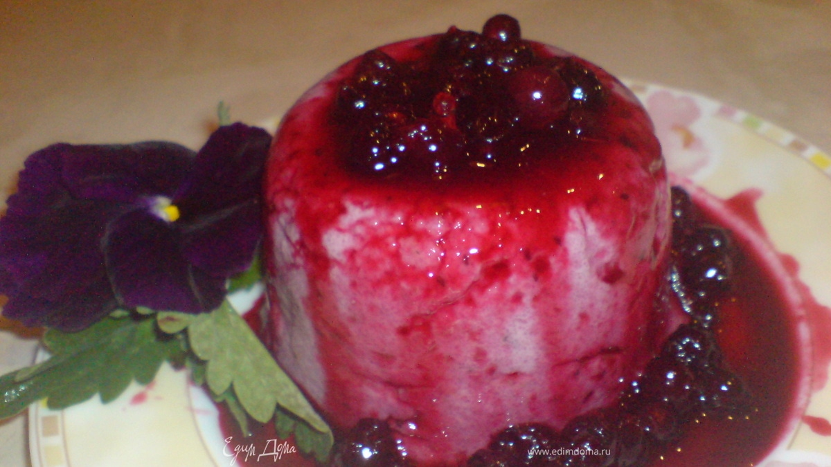 Разложить смесь в 4 формочки. Поставить в холодильник на 20 мин. Подавать, украсив вареными ягодами и полив сиропом. ПРИЯТНОГО АППЕТИТА!!!