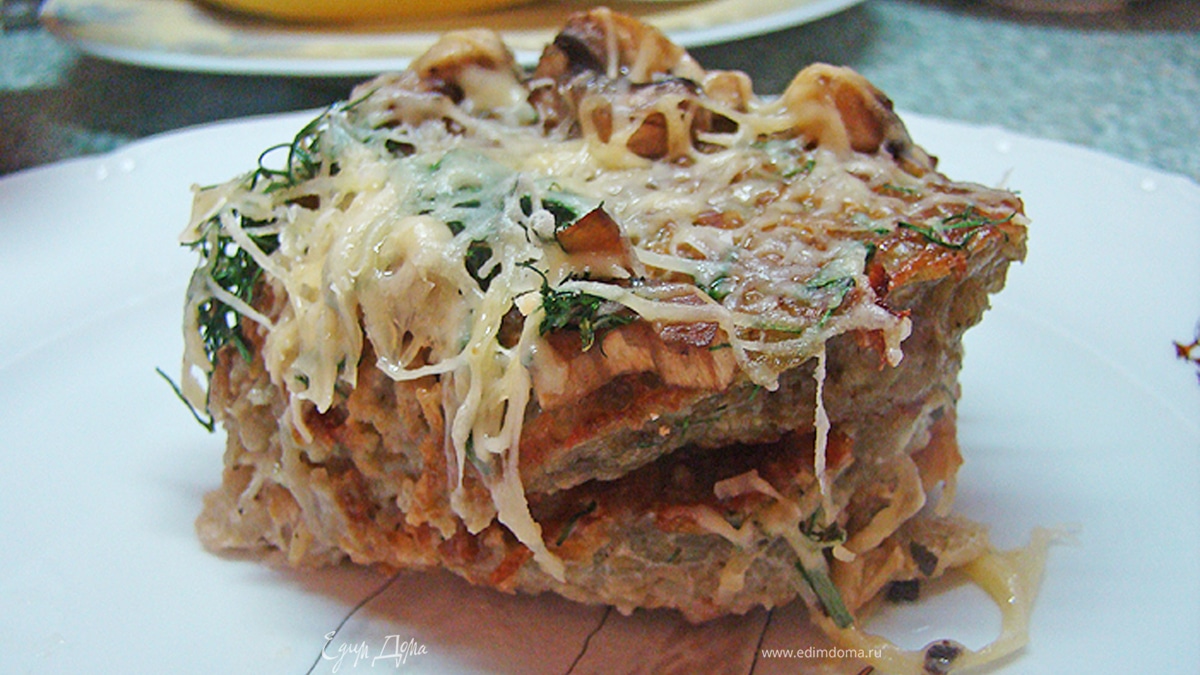 Выкладываем их слоями в форму для запекания. Каждый слой можно посыпать приправой. Я посыпала итальянскими травами. Сверху выкладываем обжаренные кусочки грибов на подсолнечном масле. - Шаг 3