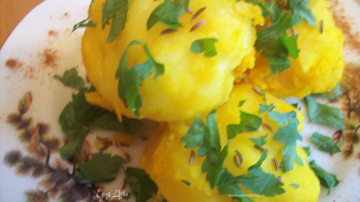 Картофель с куркумой и тмином
