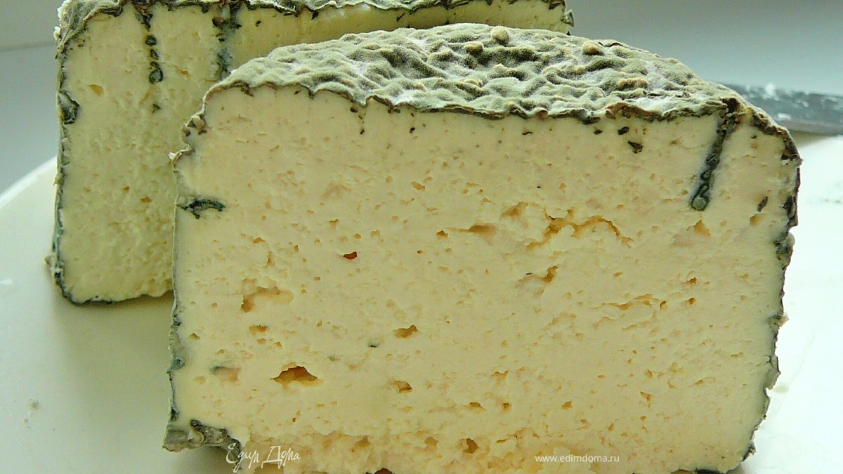 - Шаг 15Сыр поставить в темное место,при средей комнатной температуре,оставляем его иждем пока плесень начнет покрывать сыр.Прошу обратить внимание!!!ПЛЕСЕНЬ ДОЛЖНА БЫТЬ ТОЛЬКО ГОЛУБОГО,ЗЕЛЕНОВАТО-ГОЛУБОГО ЦВЕТА!Все остальное белое и красное,или серобуро-малиновое не правильно,значит где-то в процессе приготовления вы нарушили стерильность.Сыр покроется плесенью весь примерно через неделю,иногда на это уходит чуть больше 10 дней,2недели.Все зависит от температуры вызревания.Сыр надо переворачивать каждые два дня,стерильными руками или же одевайте перчатки!Вы почувствуете как меняется запах сыра и все больше он напоминает Дор блю.Как только ваш сыр полностью покрылся плесенью,достаем его,заворачиваем в пергамент и отправляем в холодильник на дозревание еще на неделю.На фото моему сыру 10 дней,я не вытерпела!Он имеет более влажную консистенцию чем должен,так как не успел подсохнуть и был съеден.Перед употреблением ножом аккуратно срезаем слой корочки с плесенью,нарезаем сыр и приятного аппетита.)