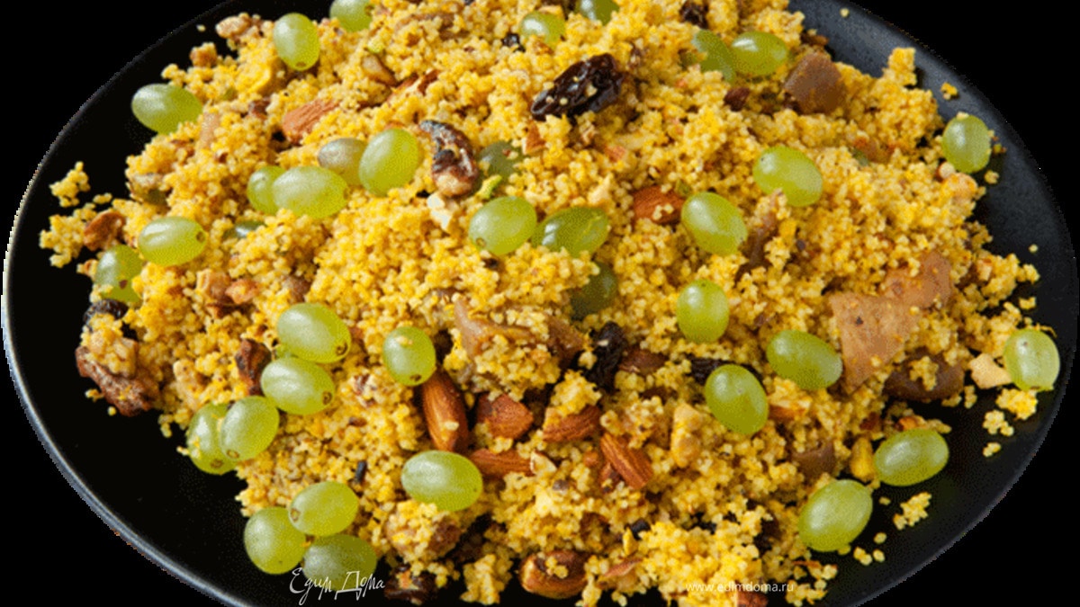 - Шаг 1Кускус заварить смесью сока, цедры и мёда (предварительно нагрев смесь почти до кипения), дать постоять под крышкой 10 минут.