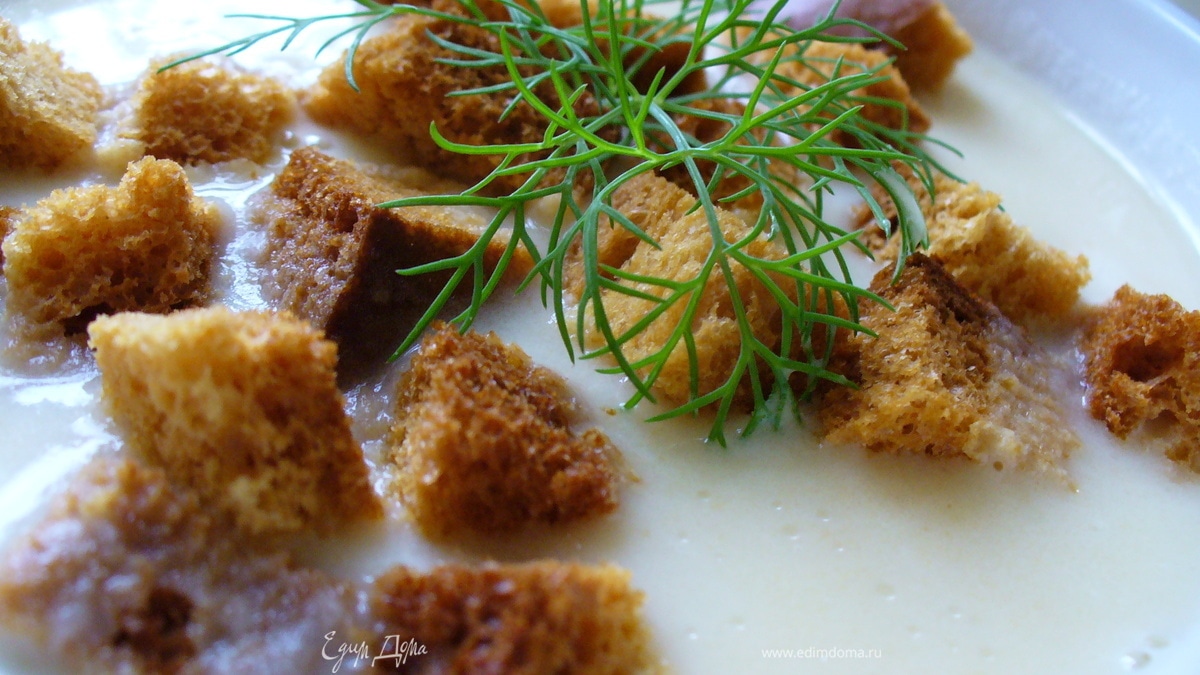 Подавать в красивых глубоких супницах с сухариками и зеленью.