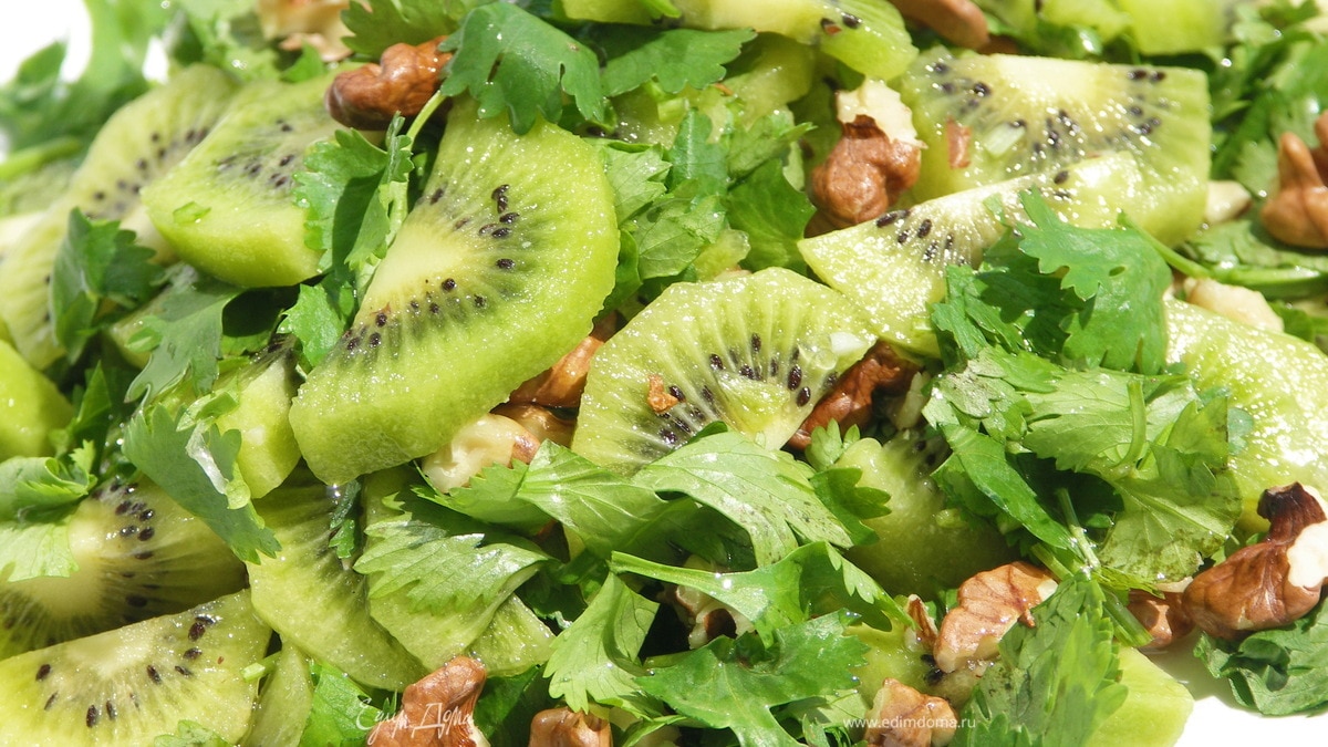 Салат из кинзы,киви и грецких орехов.