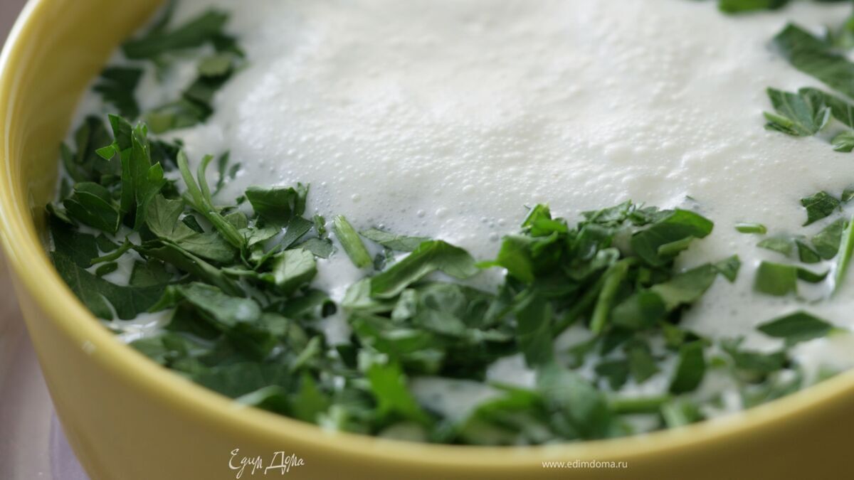 - Шаг 11. Укроп, листья петрушки, сельдерей и зеленый лук мелко порубить и перемешать с кефиром или простоквашей. 2. Добавить на кончике ножа тертый мускатный орех. 3. Получившуюся смесь хорошо взбить и охладить. Пить по полстакана по утрам.